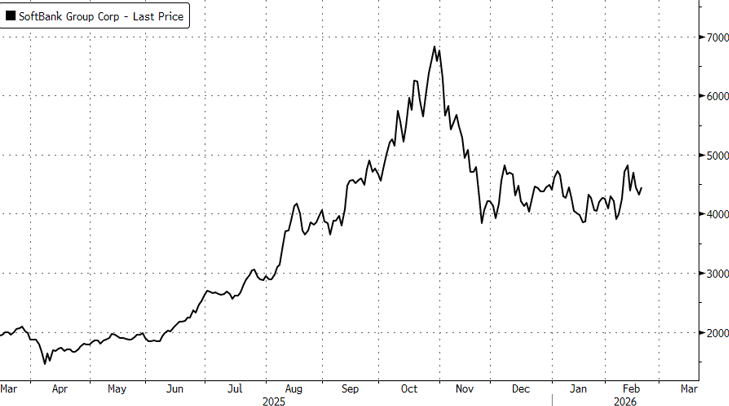 Shares of SoftBank, which held an 11% stake in OpenAI as of December, jumped as much as 4% on the news during Tokyo trading. Shares closed up 2.6% and have remained flat year-to-date after peaking in October 2025.