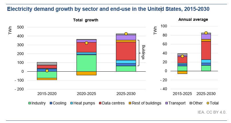 U.S. electricity demand rose by 2.1% in 2025 and is expected to grow by nearly 2% annually through 2030. The rapid expansion of data centers will drive half of the increase, the agency noted.