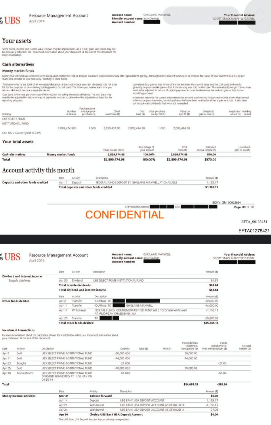 En août 2006 elle avait déjà presque 15 millions sur son compte avec la mention « Traitement confidentiel demandé par JPMorgan Chase ».