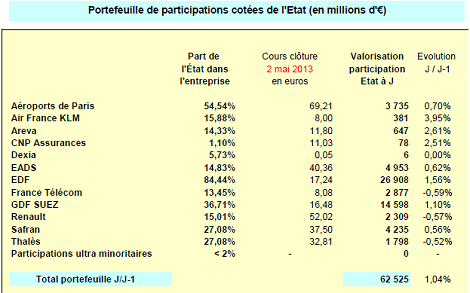Rappelons que le ministère de l’Economie avait d’ores et déjà indiqué que le portefeuille des participations de l’Etat pourrait prochainement être soumis à modification, pour nous disait-on alors « réaliser des investissements jugés plus stratégiques ». Citant alors l’exemple de la cession de plus de 3% du capital de l’équipementier aéronautique Safran, en vue notamment de renforcer les fonds propres de la Banque publique d’investissement (BPI). Une opération qui avait au final rapporté 448,5 millions d’euros à l’Etat.