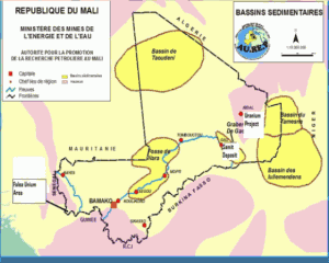 Rappelons en effet que le bassin de Taoudéni est un large bassin couvrant une zone de plus de 500000 km2 sur la partie Sud et Est de la Mauritanie, et se prolongeant vers l’Est jusqu’à une zone similaire dans la partie Ouest du Mali. Offrant ainsi des ressources en matières premières qui ne peuvent qu’attirer les appétits ….