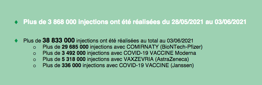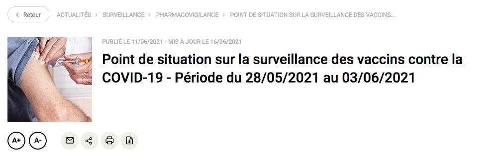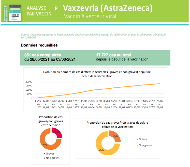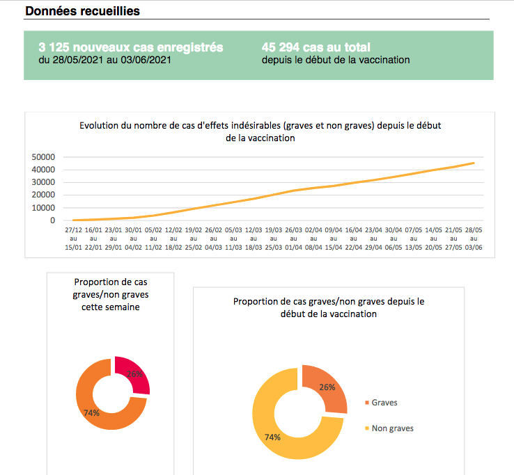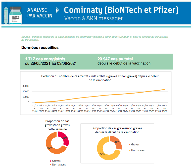 Nous sommes retournés sur le site de l’ANSM pour prendre connaissance des dernières données et du point de situation pour la semaine du 28 mai 2021 au 3 juin.