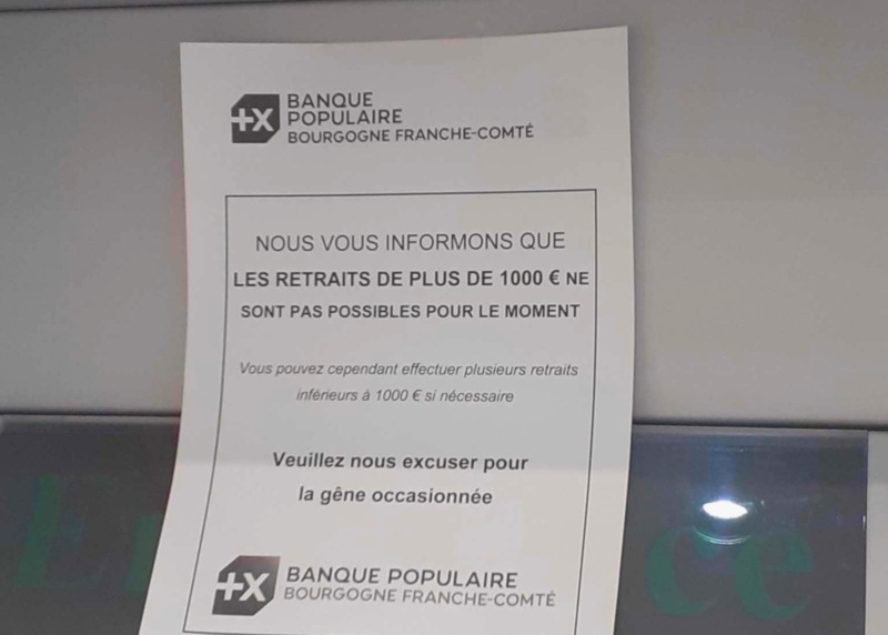 De Sandy: "Je suis au Crédit Agricole et ils m'ont demandé d'où venait l'argent que je déposais même chose qd j'ai retiré". Ci dessous, une affiche typique qu'on voit fleurir un peu partout en France (merci à notre lecteur) :