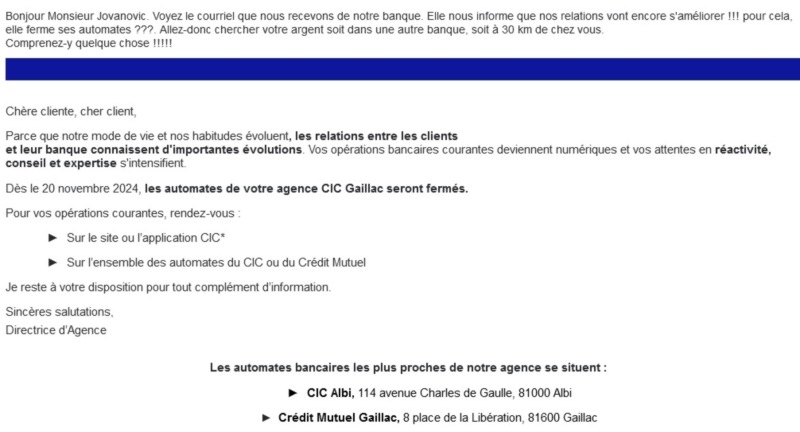 Améliorer le service client en fermant des distributeurs? La décision de la banque CIC de fermer certains de ses distributeurs automatiques de billets a provoqué une vague d’indignation parmi ses clients. Ironiquement, l’argument avancé par l'établissement bancaire est que cette mesure vise à "améliorer le service" offert à sa clientèle: