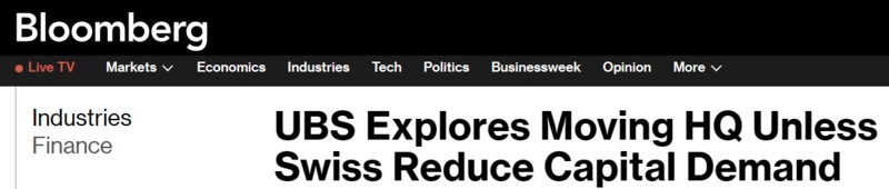 EN PANNE DE LIQUIDITES UBS MENACE DE QUITTER LA SUISSE