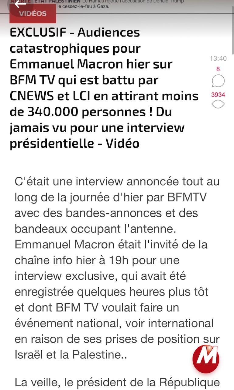 Notre lectrice Mme Kennedy a vu que l’interview « EXCLUSIVE » sur BFM d’Emmanuel Macron sur son vote à l’ONU a été l’un de ses plus grands bides: