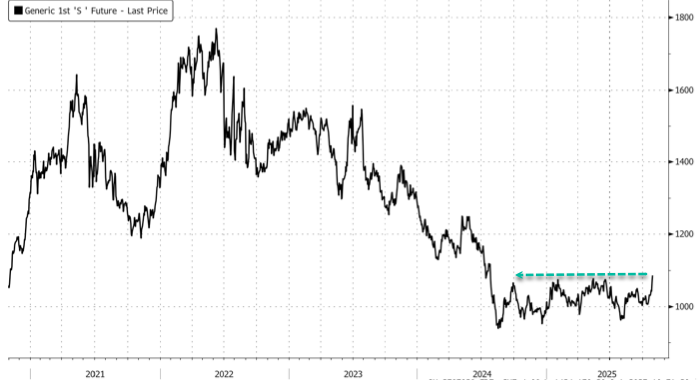 Soybean futures in Chicago advanced 2.3% on Monday, followed by another 1.5% gain on Tuesday, climbing above $11 a bushel, a 15-month high. Contracts stalled on Wednesday ahead of the Trump-Xi meeting. In recent years, contracts have tumbled because of China's sourcing pivot toward South America.