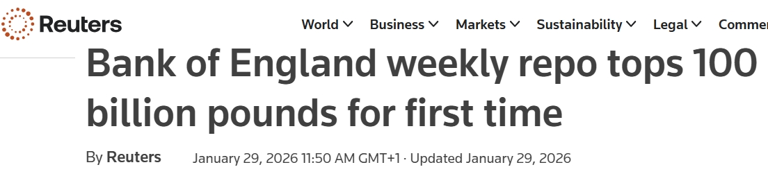 Imaginez que même Reuters a été obligé d’en parler: "La Bank of England a sorti 100 milliards de livres sterling et les a prêtés aux banques lors de son opération hebdomadaire de pension à court terme, une première depuis le lancement du programme en 2022 (lire: lors de la crise bancaire en 2022)