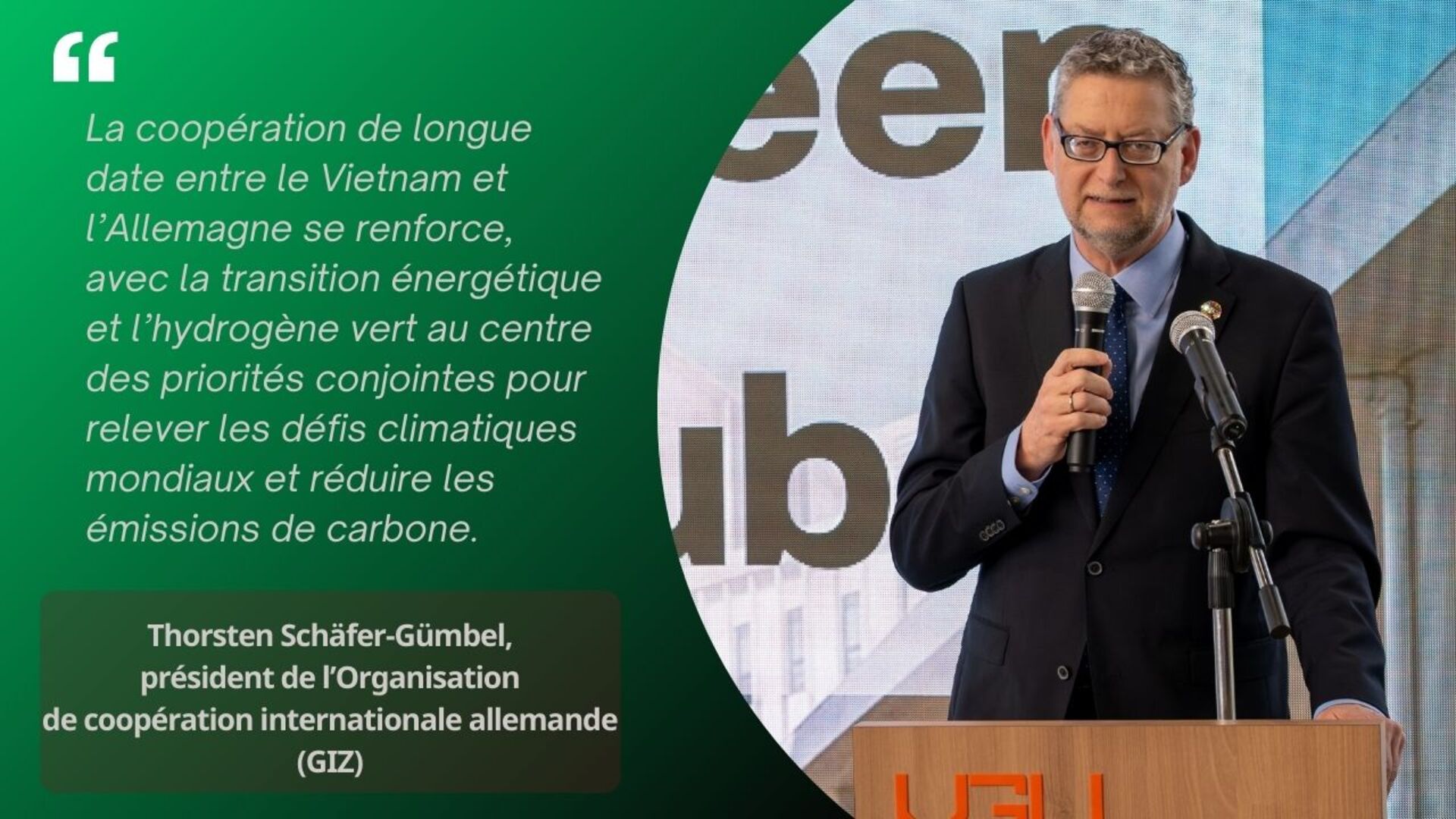 Lors de son allocution, Thorsten Schäfer-Gümbel a salué l’engagement des partenaires vietnamiens dans la voie du développement énergétique durable. Il a souligné que ''la coopération de longue date entre le Vietnam et l’Allemagne se renforce, avec la transition énergétique et l’hydrogène vert au centre des priorités conjointes pour relever les défis climatiques mondiaux et réduire les émissions de carbone''.