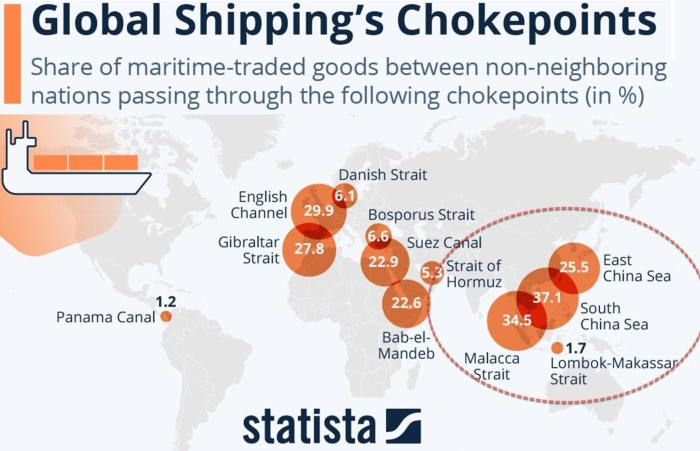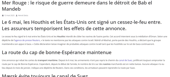 Les deux détroits de bloqués et ce seront 40% du trafic vers l’Europe qui seront à l’arrêt. On vit une sorte de fin des temps intéressants.... lire ici ce point de l’IRIS. et ici le site spécialisé Ports & Corridors.