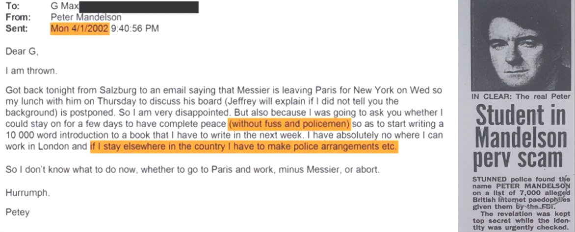 Déjà en l’Anglais Peter Mandelson avait fait l'objet d'une enquête du FBI pour usage intensif de sites p*** avec des enfants et l’avait signalé à... Scotland Yard... Dans le même temps, il envoyait des mails à Ghislaine Maxwell.