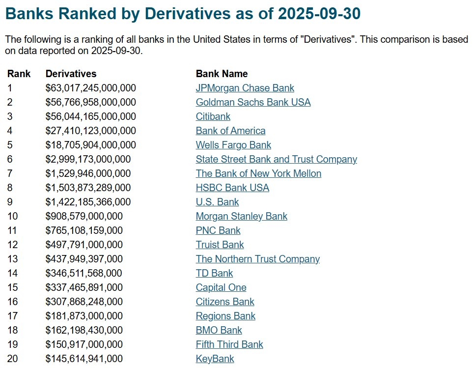 Le tableau ci-dessous vous donne l’autre raison pour laquelle la Fed a décidé d’alléger les obligations des banques américaines: les produits dérives « à la Blythe Masters » !!!