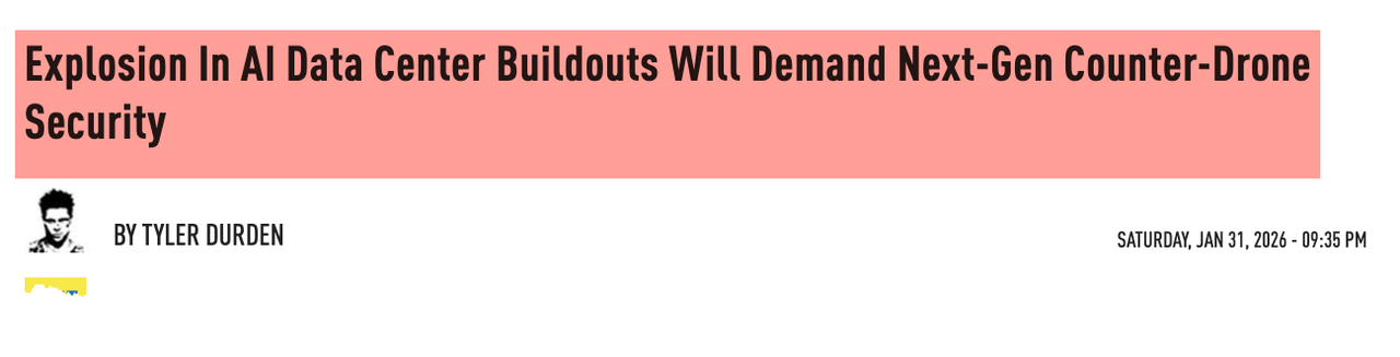 We first outlined the theme in a late January note titled "Explosion in AI Data Center Buildouts Will Demand Next-Gen Counter-Drone Security."