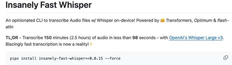 Les Américains ne sont pas en reste. Imaginez que le logiciel IA GRATUIT de transcriptions d'interviews audio Whisper de OpenAI a rédigé - en texte - 2,5 heures d'audio en juste 98 secondes: Vous déposez un fichier audio. Une seule commande. Vous revenez et vous avez une transcription propre, horodatée, pas un brouillon approximatif ».