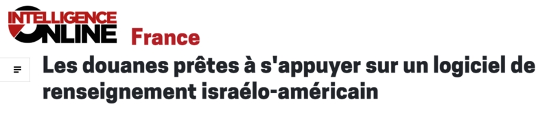Ne pas oublier: Macron a donné la gestion des données de la sécu et des vaccins à... Microsoft. Donc je ne serai pas surpris que Tracfin se mette dans le même lit que la CIA et Palentir. Et comme vous le voyez, il n’y a pas que Berci. Les Douanes veulent également un logiciel israelien, bien testé avant sur les palestiniens. Vous ne pouvez rien faire quand les gens au sommet de l'état français trahissent leur pays simplement pour palper quelques millions de plus. Revue de Presse par Pierre Jovanovic © www.quotidien.com 2008-2026